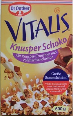 あとDr.OetkerのVITALISシリーズではKnusper Schokoもお奨め。チョコと穀物っぽさがうまく融合。