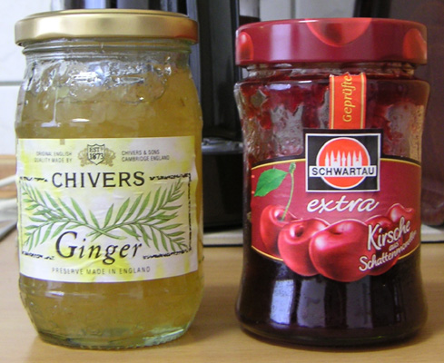 また興味本位でGingerなんて買うと、ただの甘い生姜で消費できず見るたびに悩む事になる(写真参照)。これはイギリス製だけど。イギリス人は味覚がおかしいのか?Schwartauのジャムはやや値が張り1瓶1.4ユーロくらいするが、Nettoでは別メーカーのほぼ同じ品が半値で売っている。